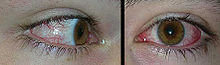 Conjuntivite é a inflamação da conjuntiva, membrana transparente e fina que reveste a parte da frente do globo ocular e o interior das pálpebras. O branco do olho (esclera) é coberto por uma película fina chamada conjuntiva, que produz muco para cobrir e lubrificar o olho. Normalmente, possui pequenos vasos sangüíneos em seu interior, que podem ser vistos através de uma observação mais rigorosa. Quando a conjuntiva se irrita ou inflama, os vasos sangüíneos que a abastecem alargam-se e tornam-se muito mais proeminentes, causando então a vermelhidão do olho.